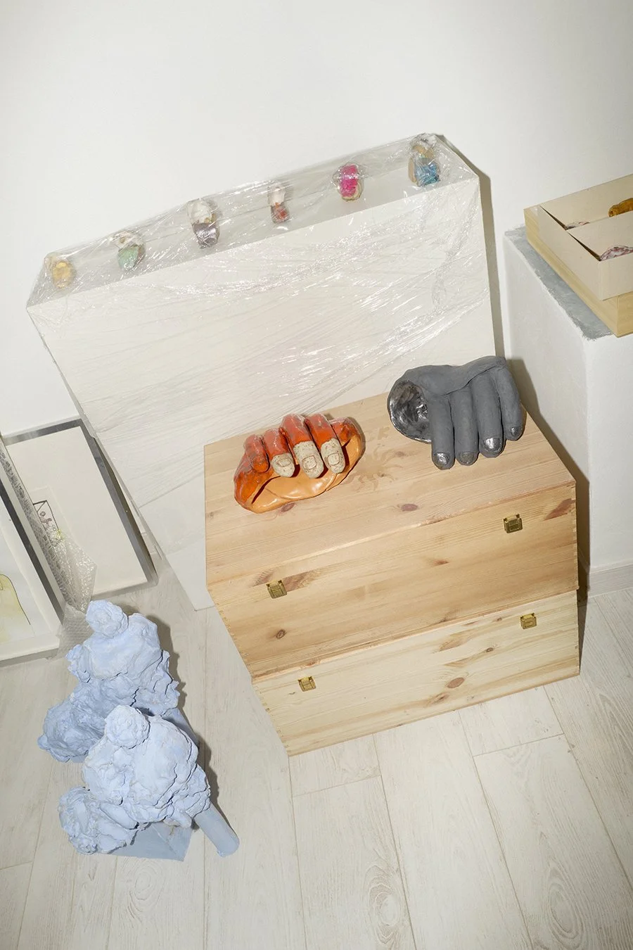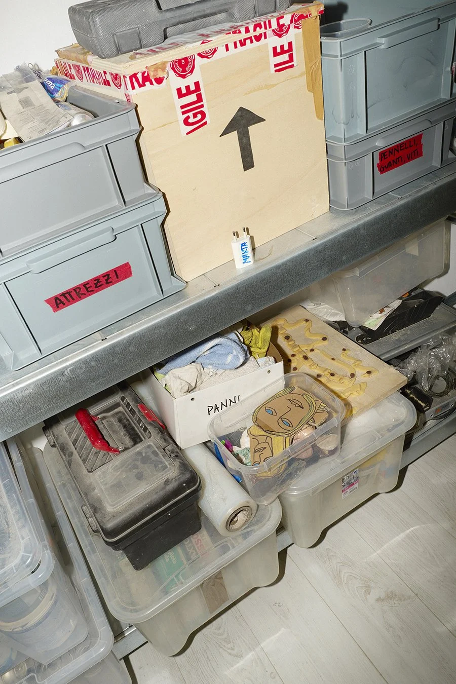 I miei materiali, le mie attrezzature, le cose per lavorare, non saprei, cioè dall'argilla ai colori, gli smalti. Non manca mai quello che mi serve per lavorare